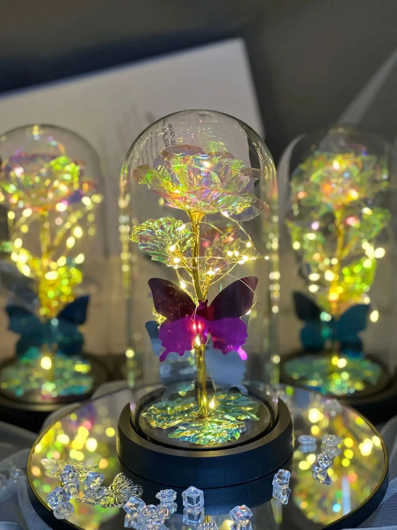 SPECIFICATIONS Hign-concerned Chemical: None Material: Glass Origin: Mainland China is_customized: No Choice: yes 1PC Superior Double Flying Butterfly Design Artificial Rose, Glass Dome DesignSKU: 14:200006151#two butterflies27,99$PrecioColortwo butterfliesCantidad*Agregar al carritoRealizar compra